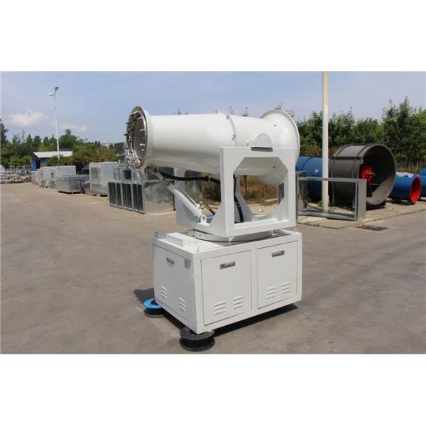 Through the principle of fan air delivery, the water is pressurized by a high-pressure pump, and the water is atomized by the micronization nozzle of the pipeline. The water mist is sprayed to a long distance through the air volume and pressure of the fan. Due to the small surface tension of the suspended dust particles in the air If it is zero, the water mist can quickly absorb the dust particles in the air, and the dust floating in the air will be adsorbed when it comes into contact, increasing the specific gravity of the dust, inhibiting the flow of dust in the air, and accelerating the dust settling, thereby controlling the amount of dust.